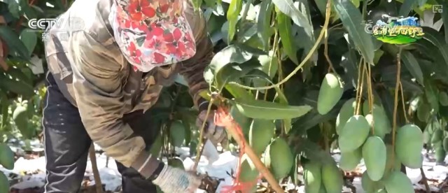 正在三亚海棠区南田农场的芒果种植,成片的果林绿意盎然,轻飘飘的果实压弯了枝头,果农们穿越林间忙着采摘、分拣、打包。
