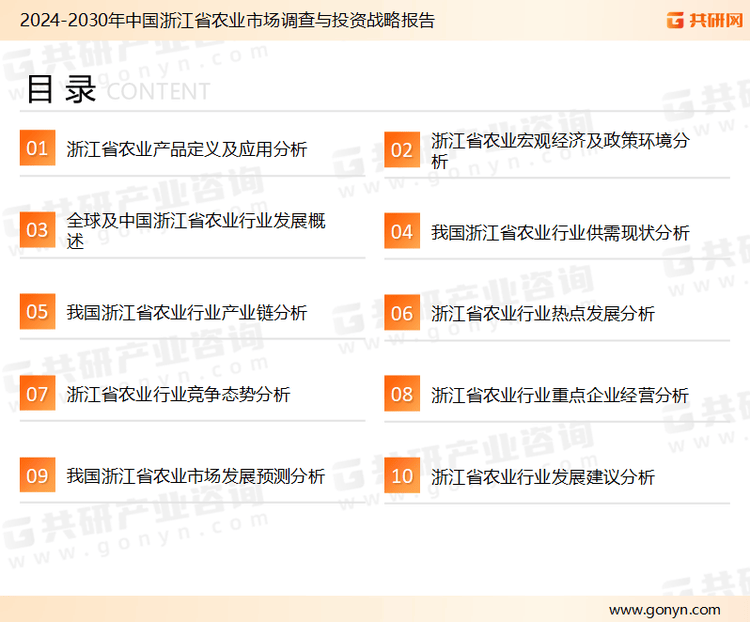 为确保浙江省农业行业数据精准性以及内容的可参考价值,共研财产研究院团队通过上市公司年报、厂家调研、经销商座谈、专家验证等多渠道开展数据采集工做,并使用共研自从成立的财产阐发模子,行业和厂商进行深度分解,可以或许反映当前市场现状、热点、动态及将来趋向,使从业者可以或许从多种维度、多个侧面分析领会当前浙江省农业行业的成长态势。
