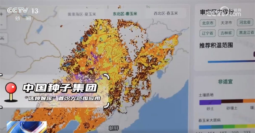 中国种子集团科技立异部担任人宋维波称:“把全国的6万多个景象形象坐点以及土壤的一些消息,通过新的一些算法模子来精准预测到每一个品种最适宜的发展区域,精准度能到5×5公里,为每一个玉米品种精准绘制适生地图。本年春耕,我们向东北、黄淮海累计投放10个新品种。”